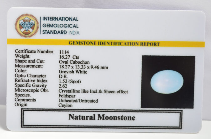 Beautiful 16.27 Cts Natural Moonstone (AAA-Mines) sva 18 Ratti MOONSTONE. Free Horoscope & Free Pundit Ji Astrological Advise / Consultation. Original Natural Lab certified gems by IGI GTL / Birth stones / Large Gem Selection of shree shubh Rashi Ratan Vedic dhan at Gem Mines. May Bhagwan Brahma, Vishnu, Shiv & Universe bless you.