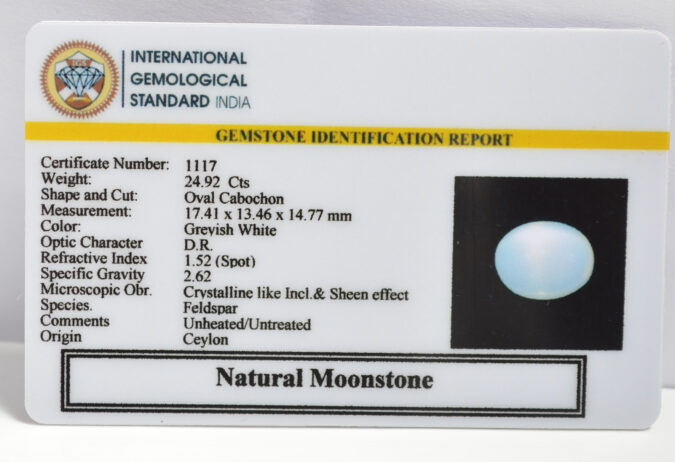 Certified Natural Moonstone 24.92 Ct.(27 Ratti) in Oval Cabochon shape