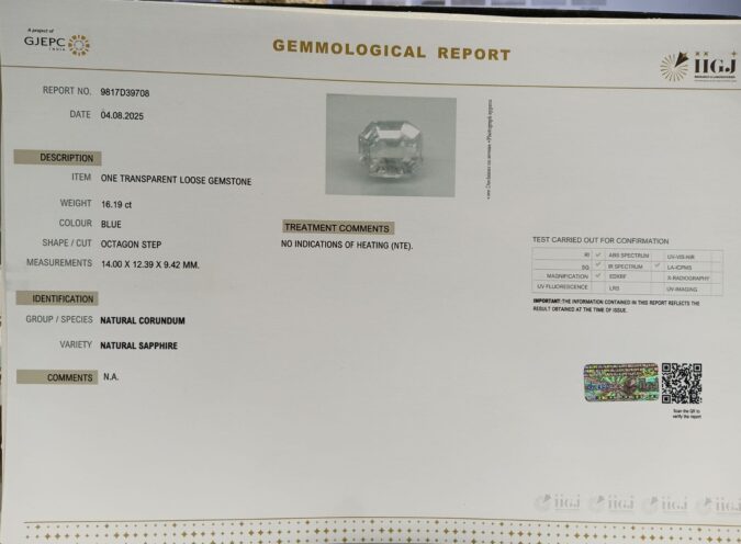 Beautiful 16.19 Cts Natural Blue Sapphire (AAA+-Mines) sva 17+ Ratti NATURAL SAPPHIRE. Free Horoscope & Free Pundit Ji Astrological Advise / Consultation. Original Natural Lab certified gems by IGI GTL / Birth stones / Large Gem Selection of shree shubh Rashi Ratan Vedic dhan at Gem Mines. May Bhagwan Brahma, Vishnu, Shiv & Universe bless you.