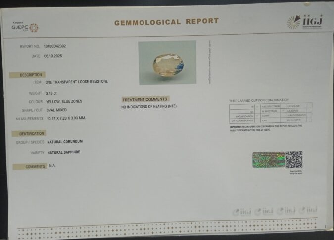 Beautiful 3.18 Cts NATURAL SAPPHIRE (AAA-Mines) sva 3+ Ratti NATURAL SAPPHIRE. Free Horoscope & Free Pundit Ji Astrological Advise / Consultation. Original Natural Lab certified gems by IGI GTL / Birth stones / Large Gem Selection of shree shubh Rashi Ratan Vedic dhan at Gem Mines. May Bhagwan Brahma, Vishnu, Shiv & Universe bless you.