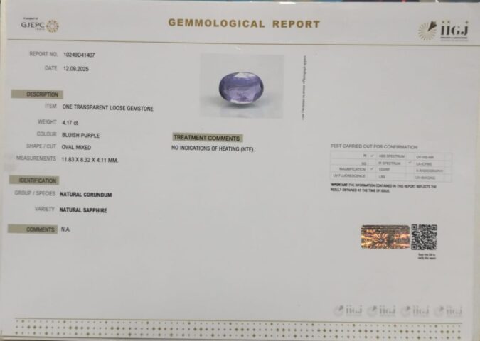Beautiful 4.17 Cts Natural Sapphire (Top++-Mines) sva 4+ Ratti NATURAL SAPPHIRE. Free Horoscope & Free Pundit Ji Astrological Advise / Consultation. Original Natural Lab certified gems by IGI GTL / Birth stones / Large Gem Selection of shree shubh Rashi Ratan Vedic dhan at Gem Mines. May Bhagwan Brahma, Vishnu, Shiv & Universe bless you.