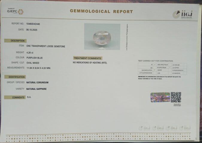 Beautiful 4.26 Cts NATURAL SAPPHIRE (Very Good-Mines) sva 4+ Ratti NATURAL SAPPHIRE. Free Horoscope & Free Pundit Ji Astrological Advise / Consultation. Original Natural Lab certified gems by IGI GTL / Birth stones / Large Gem Selection of shree shubh Rashi Ratan Vedic dhan at Gem Mines. May Bhagwan Brahma, Vishnu, Shiv & Universe bless you.
