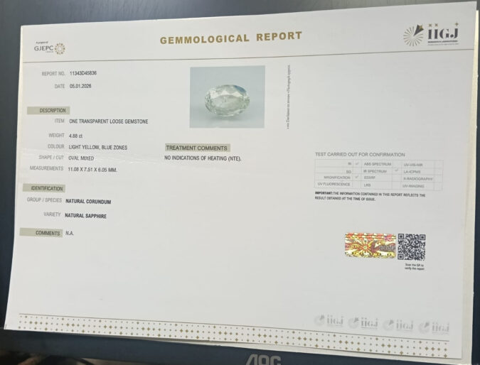 Beautiful 4.88 Cts Natural Natural Sapphire (AAA+-Mines) sva 5+ Ratti NATURAL SAPPHIRE. Free Horoscope & Free Pundit Ji Astrological Advise / Consultation. Original Natural Lab certified gems by IGI GTL / Birth stones / Large Gem Selection of shree shubh Rashi Ratan Vedic dhan at Gem Mines. May Bhagwan Brahma, Vishnu, Shiv & Universe bless you.