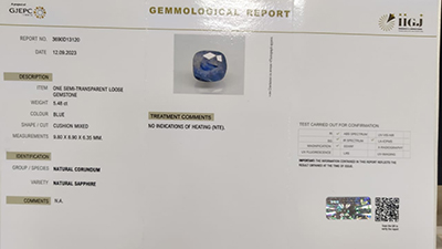 Beautiful 5.48 Ct. Natural Sapphire (AAA+-Mines) sva 6+ Ratti Nilambari Pitambari. Free Horoscope & Free Pundit Ji Astrological Advise / Consultation. Original Natural Lab certified gems by IGI GTL / Birth stones / Large Gem Selection of shree shubh Rashi Ratan Vedic dhan at Gem Mines. May Bhagwan Brahma, Vishnu, Shiv & Universe bless you.