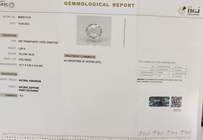 Beautiful 5.56 Ct. Natural Sapphire (Top++-Mines) sva 6+ Ratti Nilambari Pitambari. Free Horoscope & Free Pundit Ji Astrological Advise / Consultation. Original Natural Lab certified gems by IGI GTL / Birth stones / Large Gem Selection of shree shubh Rashi Ratan Vedic dhan at Gem Mines. May Bhagwan Brahma, Vishnu, Shiv & Universe bless you.