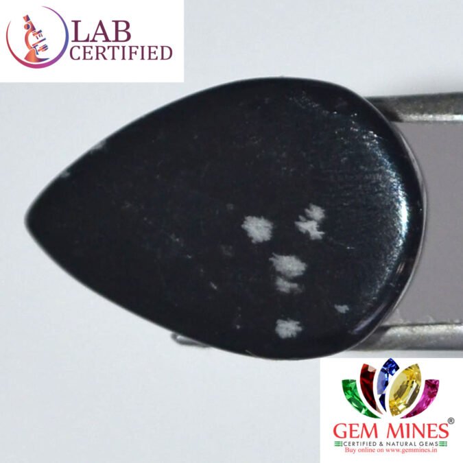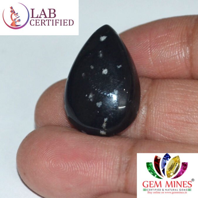Certified Natural Blackflake Obsidian 16.17 carat (17+ Ratti) in Pear Cabochon shape.