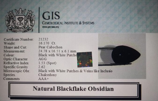 Beautiful 16.17 Ct. Blackflake Obsidian (Brazil Mines) Sava 17 Ratti. Free Horoscope & Free Pundit Ji Advise / Consultation. Original Natural Lab certified gems by IGI GTL / Birth stones / Large Gem Selection of shree shubh Rashi Ratan Vedic dhan at Gem Mines. May Bhagwan Brahma, Vishnu, Shiv & Universe bless you.