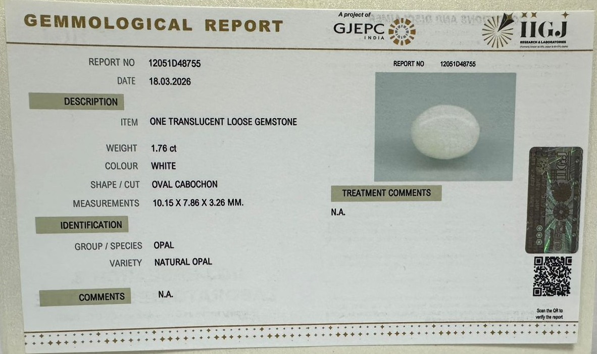 Beautiful 1.76 Cts Natural Opal (AAA+-Mines) sva 1+ Ratti OPAL. Free Horoscope & Free Pundit Ji Astrological Advise / Consultation. Original Natural Lab certified gems by IGI GTL / Birth stones / Large Gem Selection of shree shubh Rashi Ratan Vedic dhan at Gem Mines. May Bhagwan Brahma, Vishnu, Shiv & Universe bless you.