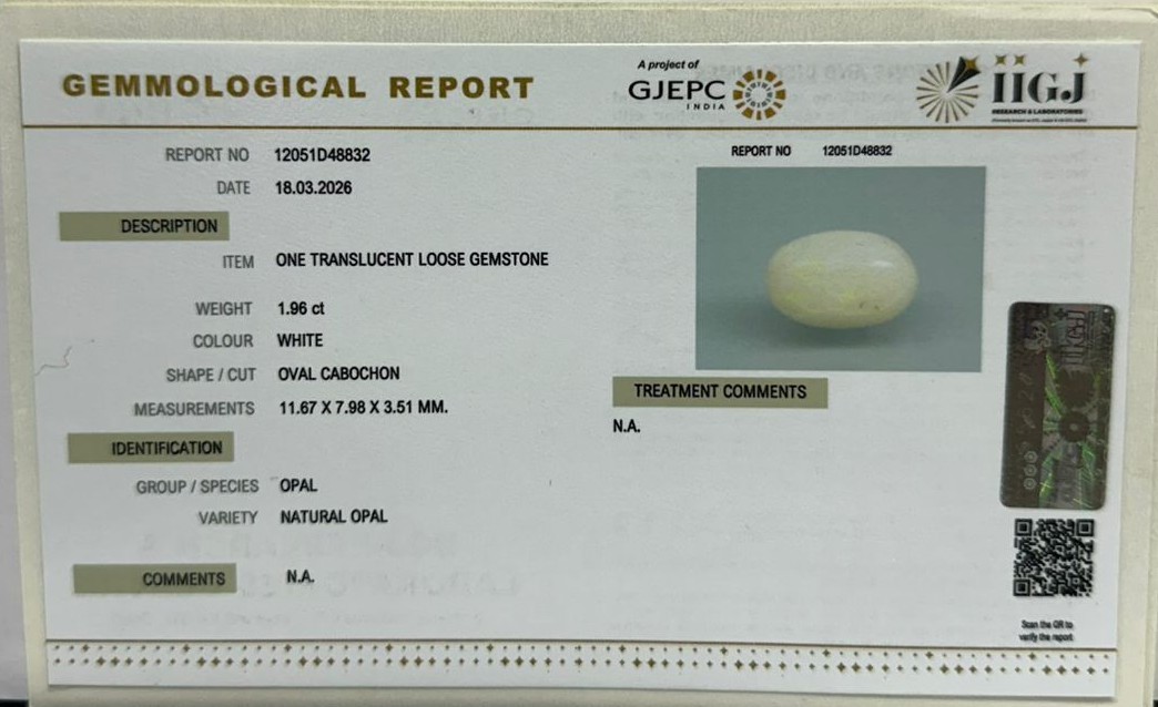 Beautiful 1.96 Cts Natural Opal (AAA+-Mines) sva 2+ Ratti OPAL. Free Horoscope & Free Pundit Ji Astrological Advise / Consultation. Original Natural Lab certified gems by IGI GTL / Birth stones / Large Gem Selection of shree shubh Rashi Ratan Vedic dhan at Gem Mines. May Bhagwan Brahma, Vishnu, Shiv & Universe bless you.