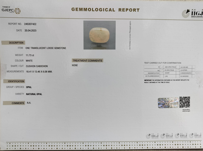 Beautiful 11.73 Ct. Natural Opal (Top++-Mines) sva 13+ Ratti Dudhiya Pathar. Free Horoscope & Free Pundit Ji Astrological Advise / Consultation. Original Natural Lab certified gems by IGI GTL / Birth stones / Large Gem Selection of shree shubh Rashi Ratan Vedic dhan at Gem Mines. May Bhagwan Brahma, Vishnu, Shiv & Universe bless you.