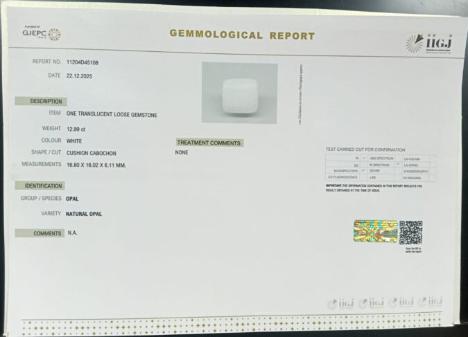 Beautiful 12.99 Cts Natural Opal (AAA+-Mines) sva 14+ Ratti OPAL. Free Horoscope & Free Pundit Ji Astrological Advise / Consultation. Original Natural Lab certified gems by IGI GTL / Birth stones / Large Gem Selection of shree shubh Rashi Ratan Vedic dhan at Gem Mines. May Bhagwan Brahma, Vishnu, Shiv & Universe bless you.