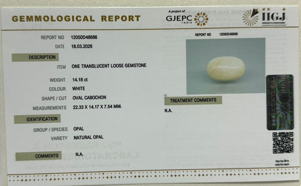 Beautiful 14.18 Cts Natural Opal (AAA-Mines) sva 15+ Ratti OPAL. Free Horoscope & Free Pundit Ji Astrological Advise / Consultation. Original Natural Lab certified gems by IGI GTL / Birth stones / Large Gem Selection of shree shubh Rashi Ratan Vedic dhan at Gem Mines. May Bhagwan Brahma, Vishnu, Shiv & Universe bless you.
