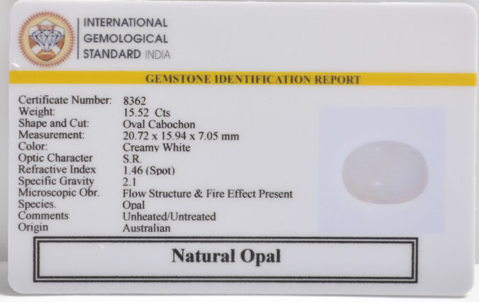 Beautiful 15.52 Cts Natural Opal (Good-Mines) sva 17+ Ratti OPAL. Free Horoscope & Free Pundit Ji Astrological Advise / Consultation. Original Natural Lab certified gems by IGI GTL / Birth stones / Large Gem Selection of shree shubh Rashi Ratan Vedic dhan at Gem Mines. May Bhagwan Brahma, Vishnu, Shiv & Universe bless you.