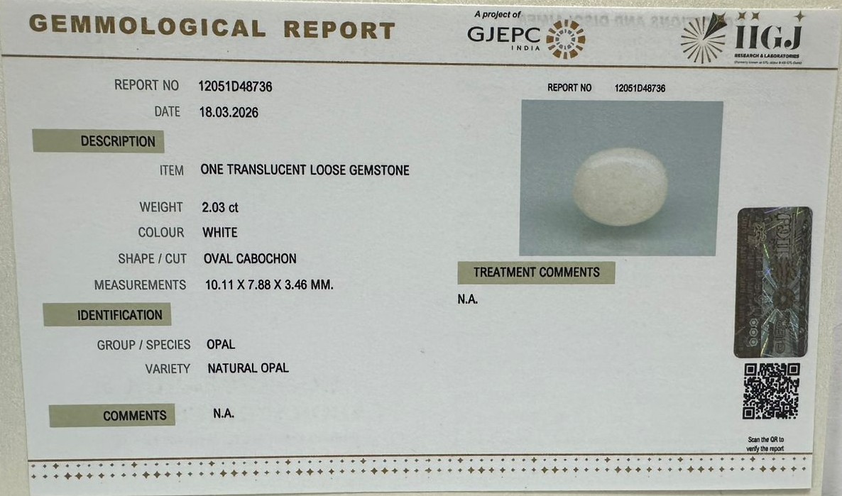 Beautiful 2.03 Cts Natural Opal (AAA+-Mines) sva 2+ Ratti OPAL. Free Horoscope & Free Pundit Ji Astrological Advise / Consultation. Original Natural Lab certified gems by IGI GTL / Birth stones / Large Gem Selection of shree shubh Rashi Ratan Vedic dhan at Gem Mines. May Bhagwan Brahma, Vishnu, Shiv & Universe bless you.