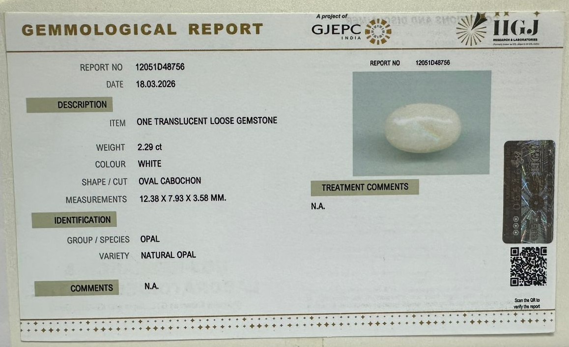 Beautiful 2.29 Cts Natural Opal (AAA+-Mines) sva 2+ Ratti OPAL. Free Horoscope & Free Pundit Ji Astrological Advise / Consultation. Original Natural Lab certified gems by IGI GTL / Birth stones / Large Gem Selection of shree shubh Rashi Ratan Vedic dhan at Gem Mines. May Bhagwan Brahma, Vishnu, Shiv & Universe bless you.