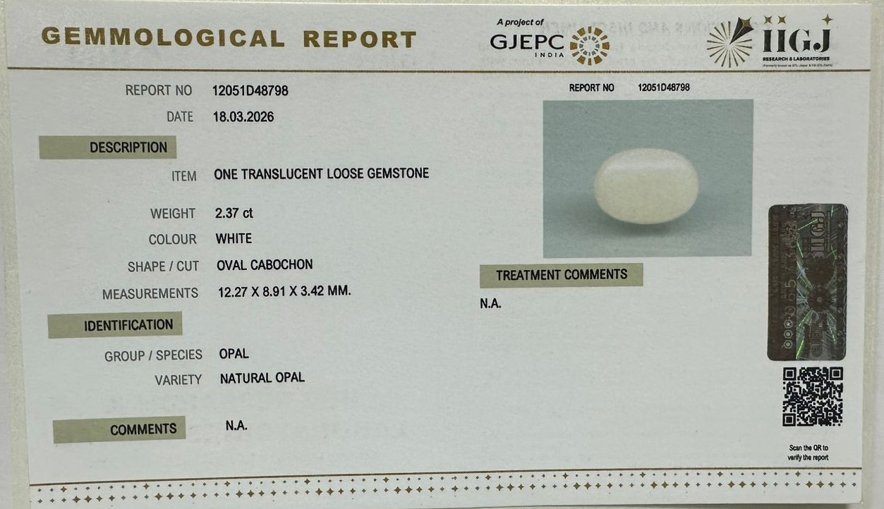 Beautiful 2.37 Cts Natural Opal (AAA+-Mines) sva 2+ Ratti OPAL. Free Horoscope & Free Pundit Ji Astrological Advise / Consultation. Original Natural Lab certified gems by IGI GTL / Birth stones / Large Gem Selection of shree shubh Rashi Ratan Vedic dhan at Gem Mines. May Bhagwan Brahma, Vishnu, Shiv & Universe bless you.