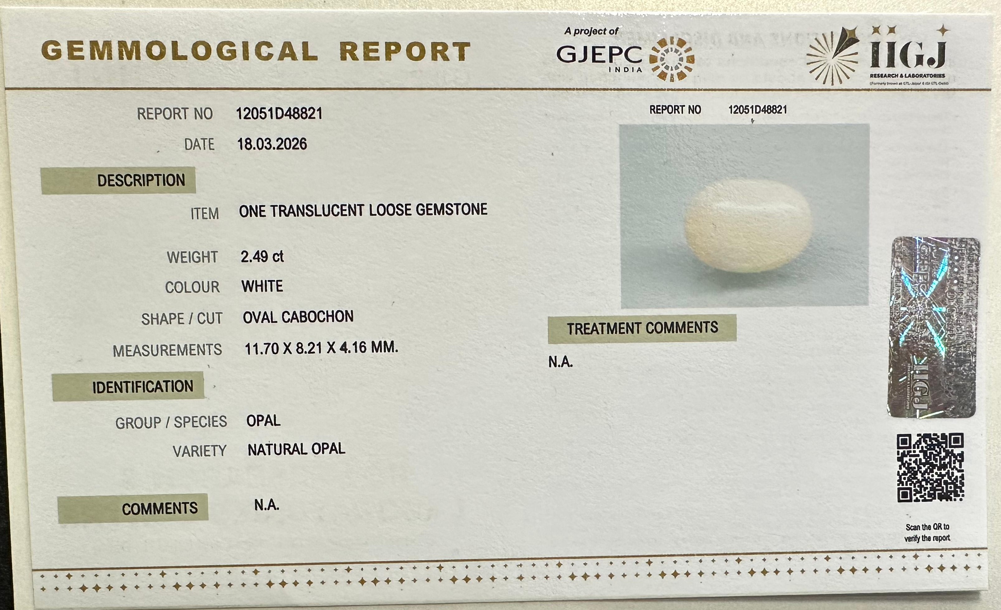 Beautiful 2.49 Cts Natural Opal (AAA+-Mines) sva 2+ Ratti OPAL. Free Horoscope & Free Pundit Ji Astrological Advise / Consultation. Original Natural Lab certified gems by IGI GTL / Birth stones / Large Gem Selection of shree shubh Rashi Ratan Vedic dhan at Gem Mines. May Bhagwan Brahma, Vishnu, Shiv & Universe bless you.