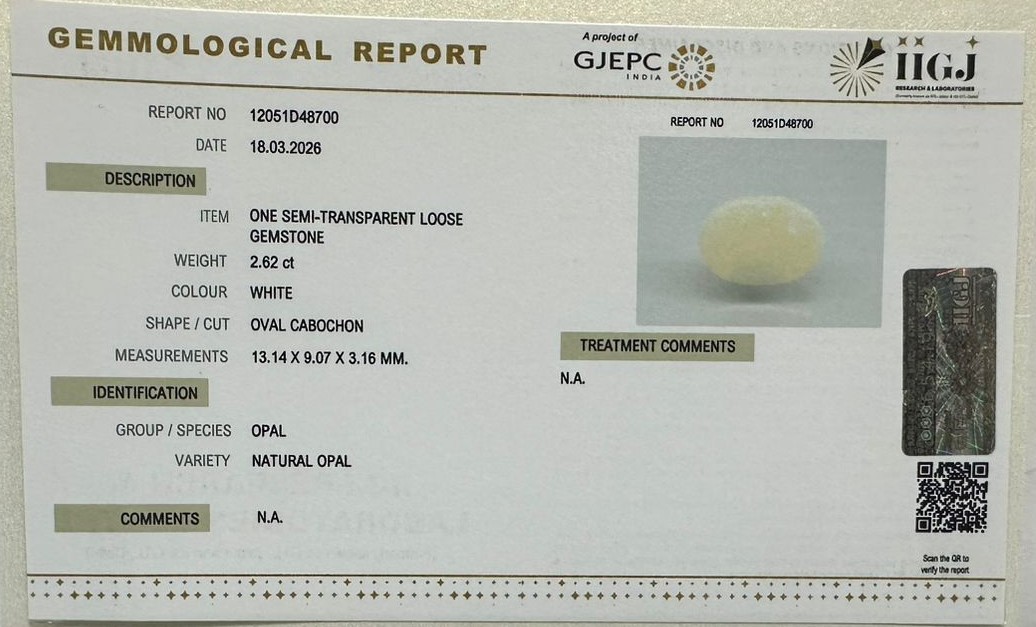 Beautiful 2.62 Cts Natural Opal (AAA+-Mines) sva 2+ Ratti OPAL. Free Horoscope & Free Pundit Ji Astrological Advise / Consultation. Original Natural Lab certified gems by IGI GTL / Birth stones / Large Gem Selection of shree shubh Rashi Ratan Vedic dhan at Gem Mines. May Bhagwan Brahma, Vishnu, Shiv & Universe bless you.