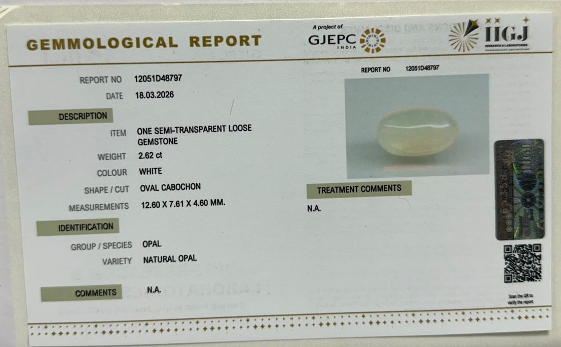 Beautiful 2.62 Cts Natural Opal (AAA+-Mines) sva 2+ Ratti OPAL. Free Horoscope & Free Pundit Ji Astrological Advise / Consultation. Original Natural Lab certified gems by IGI GTL / Birth stones / Large Gem Selection of shree shubh Rashi Ratan Vedic dhan at Gem Mines. May Bhagwan Brahma, Vishnu, Shiv & Universe bless you.