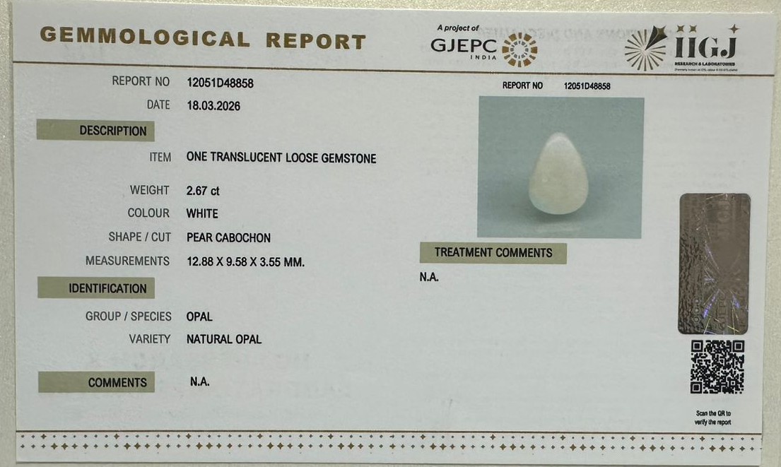 Beautiful 2.67 Cts Natural Opal (Very Good-Mines) sva 2+ Ratti OPAL. Free Horoscope & Free Pundit Ji Astrological Advise / Consultation. Original Natural Lab certified gems by IGI GTL / Birth stones / Large Gem Selection of shree shubh Rashi Ratan Vedic dhan at Gem Mines. May Bhagwan Brahma, Vishnu, Shiv & Universe bless you.