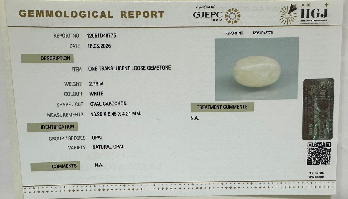 Beautiful 2.76 Cts Natural Opal (AAA+-Mines) sva 3+ Ratti OPAL. Free Horoscope & Free Pundit Ji Astrological Advise / Consultation. Original Natural Lab certified gems by IGI GTL / Birth stones / Large Gem Selection of shree shubh Rashi Ratan Vedic dhan at Gem Mines. May Bhagwan Brahma, Vishnu, Shiv & Universe bless you.