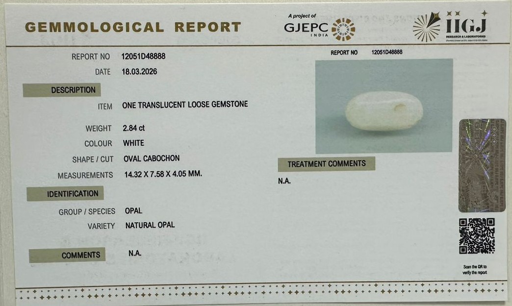 Beautiful 2.84 Cts Natural Opal (AAA+-Mines) sva 3+ Ratti OPAL. Free Horoscope & Free Pundit Ji Astrological Advise / Consultation. Original Natural Lab certified gems by IGI GTL / Birth stones / Large Gem Selection of shree shubh Rashi Ratan Vedic dhan at Gem Mines. May Bhagwan Brahma, Vishnu, Shiv & Universe bless you.
