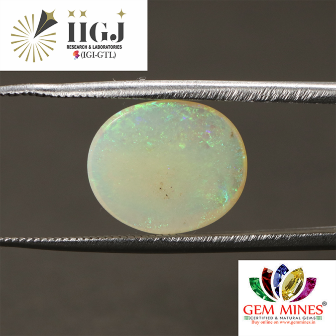 Beautiful 2.86 Ct. Natural Opal (TOP++-Mines) sva 3+ Ratti Dudhiya Pathar. Free Horoscope & Free Pundit Ji Astrological Advise / Consultation. Original Natural Lab certified gems by IGI GTL / Birth stones / Large Gem Selection of shree shubh Rashi Ratan Vedic dhan at Gem Mines. May Bhagwan Brahma, Vishnu, Shiv & Universe bless you.