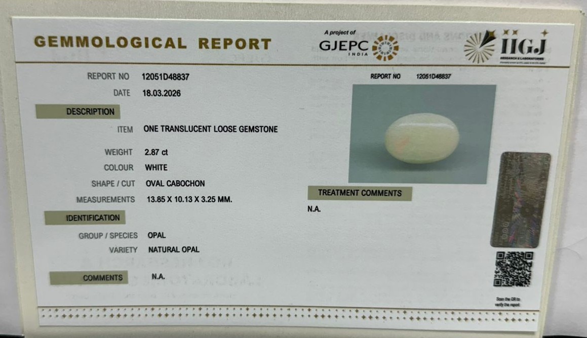 Beautiful 2.87 Cts Natural Opal (AAA+-Mines) sva 3+ Ratti OPAL. Free Horoscope & Free Pundit Ji Astrological Advise / Consultation. Original Natural Lab certified gems by IGI GTL / Birth stones / Large Gem Selection of shree shubh Rashi Ratan Vedic dhan at Gem Mines. May Bhagwan Brahma, Vishnu, Shiv & Universe bless you.