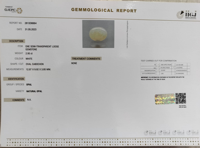 Beautiful 2.95 Ct. Natural Opal (Top++-Mines) sva 3+ Ratti Dudhiya Pathar. Free Horoscope & Free Pundit Ji Astrological Advise / Consultation. Original Natural Lab certified gems by IGI GTL / Birth stones / Large Gem Selection of shree shubh Rashi Ratan Vedic dhan at Gem Mines. May Bhagwan Brahma, Vishnu, Shiv & Universe bless you.