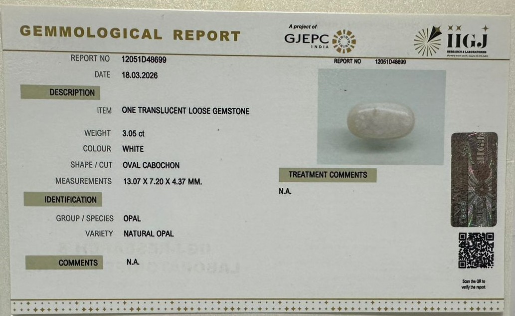 Beautiful 3.05 Cts Natural Opal (AAA+-Mines) sva 3+ Ratti OPAL. Free Horoscope & Free Pundit Ji Astrological Advise / Consultation. Original Natural Lab certified gems by IGI GTL / Birth stones / Large Gem Selection of shree shubh Rashi Ratan Vedic dhan at Gem Mines. May Bhagwan Brahma, Vishnu, Shiv & Universe bless you.