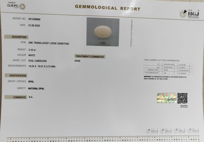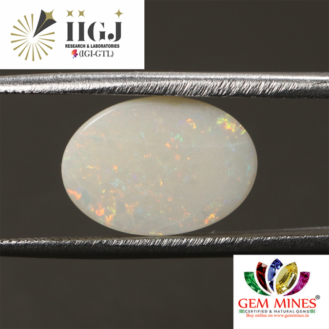 Beautiful 3.16 Ct. Natural Opal (Top++-Mines) sva 3+ Ratti Dudhiya Pathar. Free Horoscope & Free Pundit Ji Astrological Advise / Consultation. Original Natural Lab certified gems by IGI GTL / Birth stones / Large Gem Selection of shree shubh Rashi Ratan Vedic dhan at Gem Mines. May Bhagwan Brahma, Vishnu, Shiv & Universe bless you.