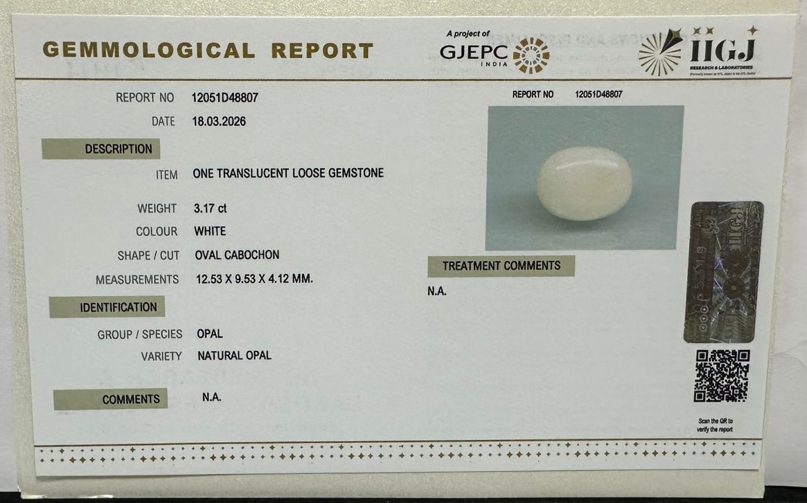Beautiful 3.17 Cts Natural Opal (AAA+-Mines) sva 3+ Ratti OPAL. Free Horoscope & Free Pundit Ji Astrological Advise / Consultation. Original Natural Lab certified gems by IGI GTL / Birth stones / Large Gem Selection of shree shubh Rashi Ratan Vedic dhan at Gem Mines. May Bhagwan Brahma, Vishnu, Shiv & Universe bless you.