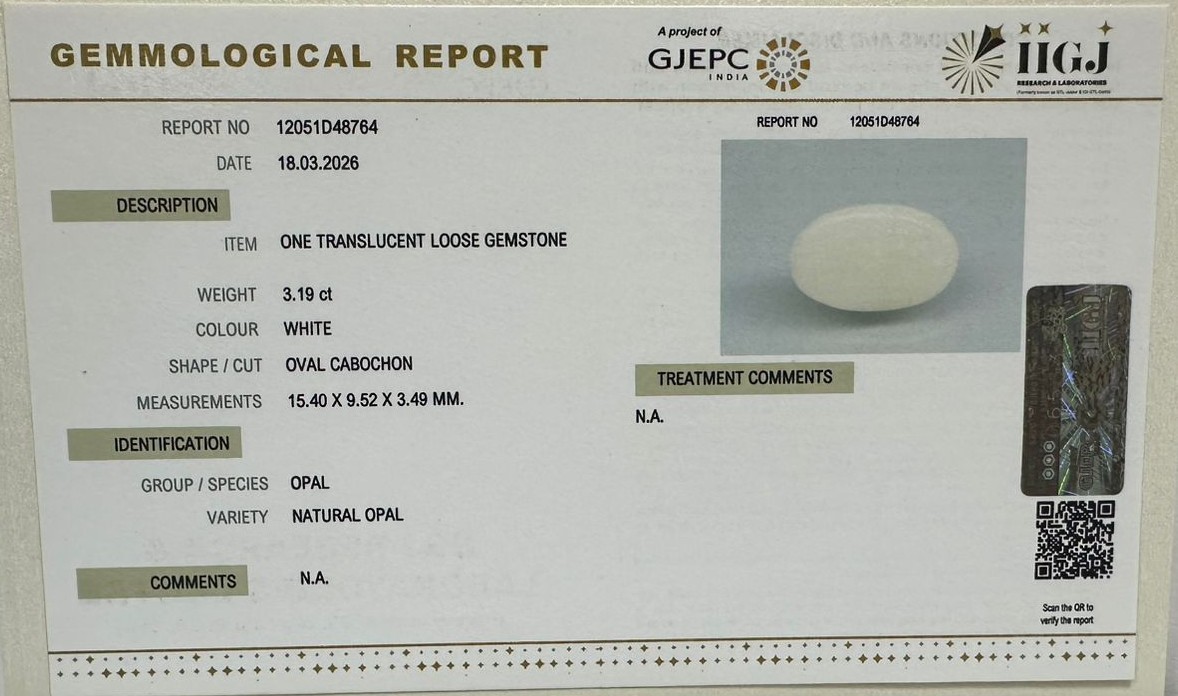 Beautiful 3.19 Cts Natural Opal (AAA+-Mines) sva 3+ Ratti OPAL. Free Horoscope & Free Pundit Ji Astrological Advise / Consultation. Original Natural Lab certified gems by IGI GTL / Birth stones / Large Gem Selection of shree shubh Rashi Ratan Vedic dhan at Gem Mines. May Bhagwan Brahma, Vishnu, Shiv & Universe bless you.