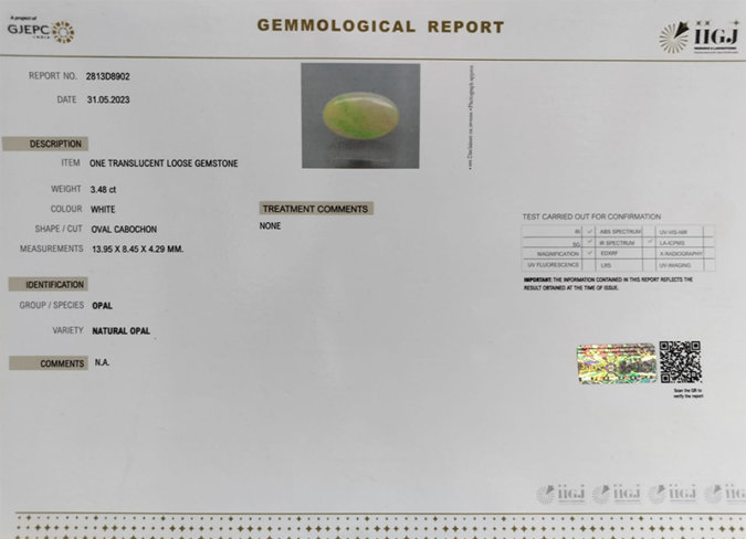 Beautiful 3.48 Ct. Natural Opal (TOP++-Mines) sva 3+ Ratti Dudhiya Pathar. Free Horoscope & Free Pundit Ji Astrological Advise / Consultation. Original Natural Lab certified gems by IGI GTL / Birth stones / Large Gem Selection of shree shubh Rashi Ratan Vedic dhan at Gem Mines. May Bhagwan Brahma, Vishnu, Shiv & Universe bless you.