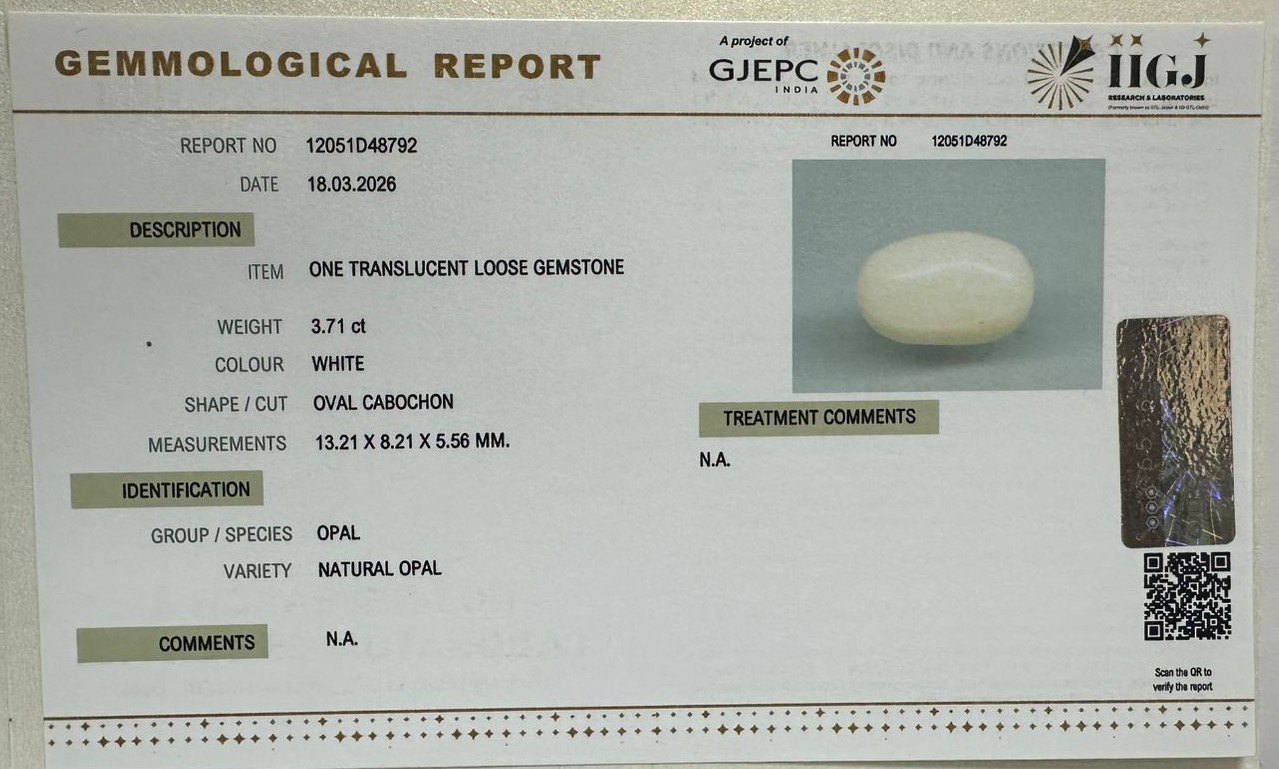 Beautiful 3.71 Cts Natural Opal (AAA+-Mines) sva 4+ Ratti OPAL. Free Horoscope & Free Pundit Ji Astrological Advise / Consultation. Original Natural Lab certified gems by IGI GTL / Birth stones / Large Gem Selection of shree shubh Rashi Ratan Vedic dhan at Gem Mines. May Bhagwan Brahma, Vishnu, Shiv & Universe bless you.