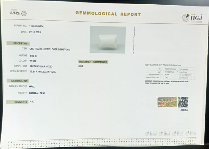 Beautiful 4.03 Cts Natural Opal (Top-Mines) sva 4+ Ratti OPAL. Free Horoscope & Free Pundit Ji Astrological Advise / Consultation. Original Natural Lab certified gems by IGI GTL / Birth stones / Large Gem Selection of shree shubh Rashi Ratan Vedic dhan at Gem Mines. May Bhagwan Brahma, Vishnu, Shiv & Universe bless you.