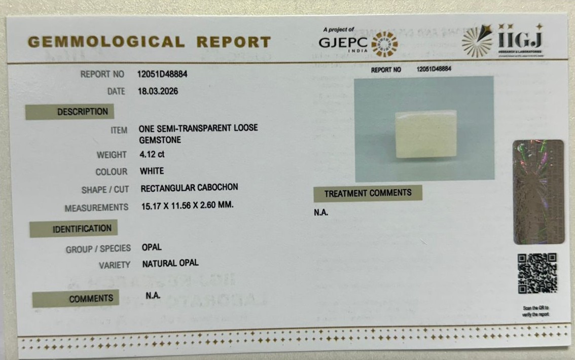 Beautiful 4.12 Cts Natural Opal (AAA+-Mines) sva 4+ Ratti OPAL. Free Horoscope & Free Pundit Ji Astrological Advise / Consultation. Original Natural Lab certified gems by IGI GTL / Birth stones / Large Gem Selection of shree shubh Rashi Ratan Vedic dhan at Gem Mines. May Bhagwan Brahma, Vishnu, Shiv & Universe bless you.