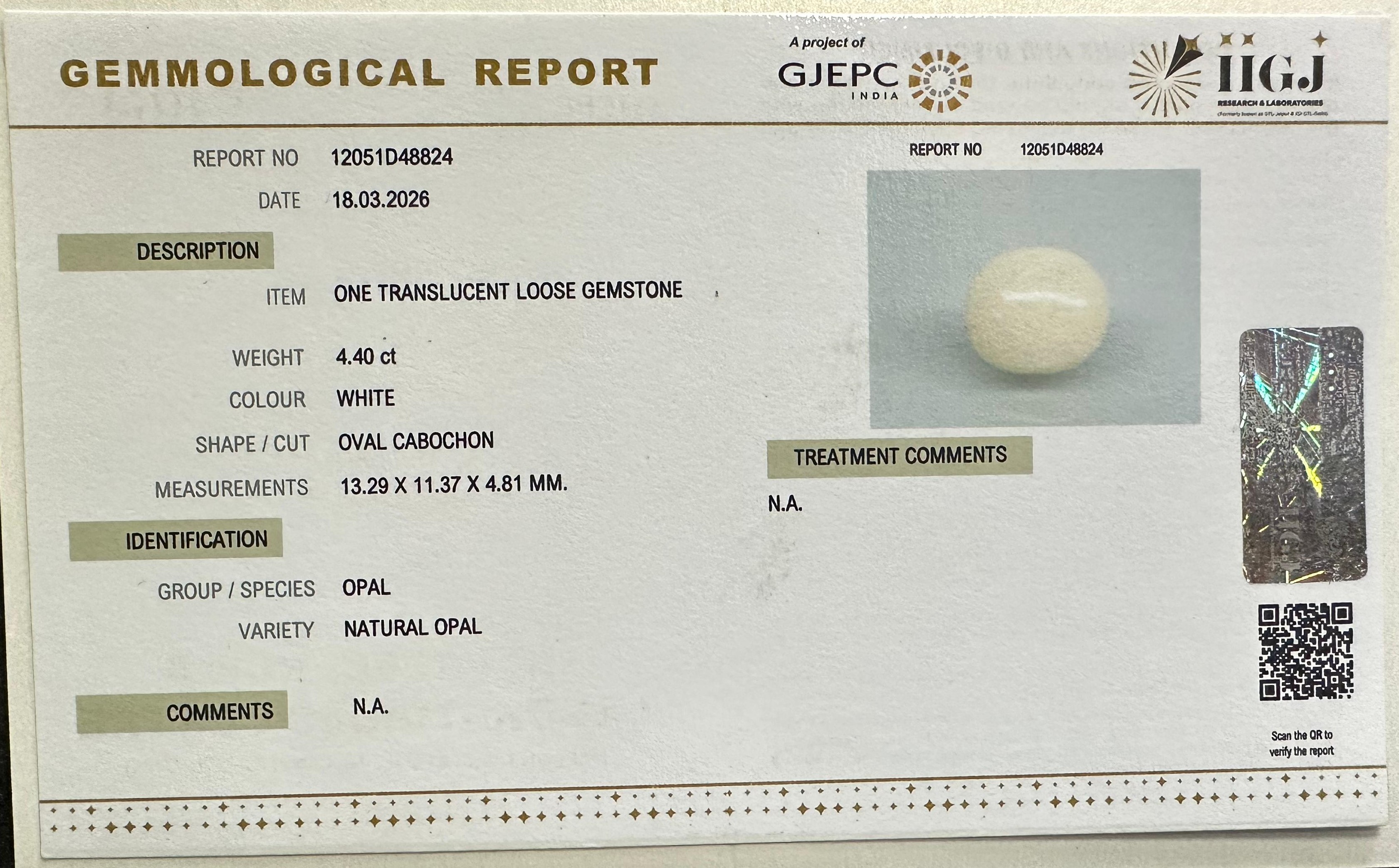 Beautiful 4.4 Cts Natural Opal (Very Good-Mines) sva 4+ Ratti OPAL. Free Horoscope & Free Pundit Ji Astrological Advise / Consultation. Original Natural Lab certified gems by IGI GTL / Birth stones / Large Gem Selection of shree shubh Rashi Ratan Vedic dhan at Gem Mines. May Bhagwan Brahma, Vishnu, Shiv & Universe bless you.