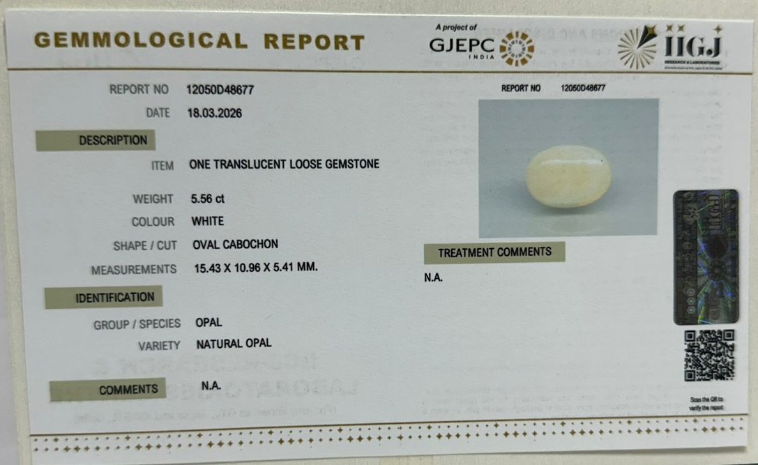 Beautiful 5.56 Cts Natural Opal (AAA+-Mines) sva 6+ Ratti OPAL. Free Horoscope & Free Pundit Ji Astrological Advise / Consultation. Original Natural Lab certified gems by IGI GTL / Birth stones / Large Gem Selection of shree shubh Rashi Ratan Vedic dhan at Gem Mines. May Bhagwan Brahma, Vishnu, Shiv & Universe bless you.