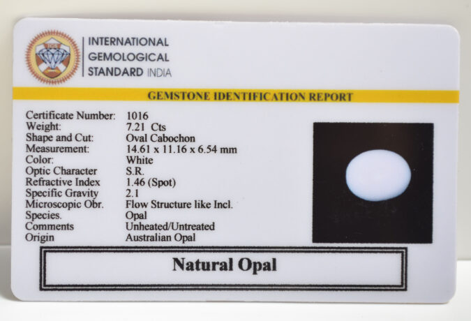 Beautiful 7.21 Cts Natural Opal (AAA+Mines) sva 8 Ratti OPAL. Free Horoscope & Free Pundit Ji Astrological Advise / Consultation. Original Natural Lab certified gems by IGI GTL / Birth stones / Large Gem Selection of shree shubh Rashi Ratan Vedic dhan at Gem Mines. May Bhagwan Brahma, Vishnu, Shiv & Universe bless you.