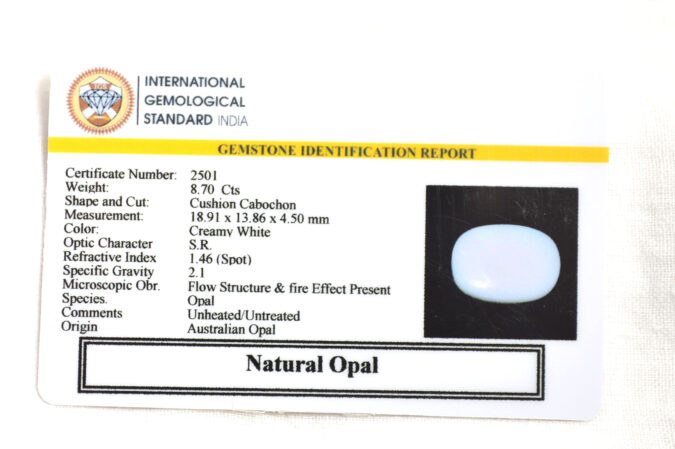 Beautiful 8.7 Cts Natural Opal (Very Good-Mines) sva 9+ Ratti OPAL. Free Horoscope & Free Pundit Ji Astrological Advise / Consultation. Original Natural Lab certified gems by IGI GTL / Birth stones / Large Gem Selection of shree shubh Rashi Ratan Vedic dhan at Gem Mines. May Bhagwan Brahma, Vishnu, Shiv & Universe bless you.