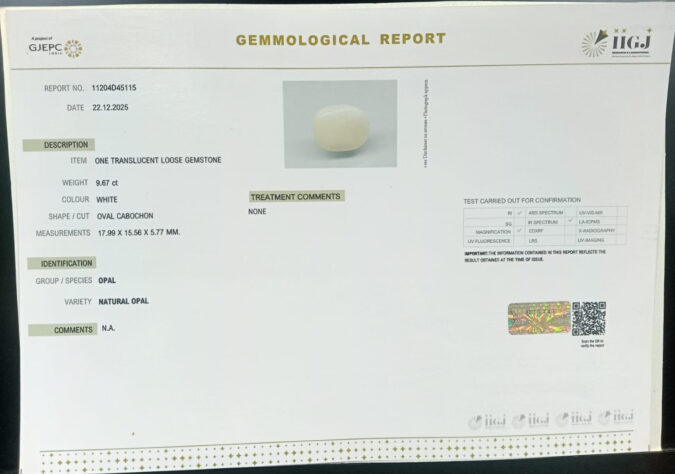 Beautiful 9.67 Cts Natural Opal (AAA+-Mines) sva 10+ Ratti OPAL. Free Horoscope & Free Pundit Ji Astrological Advise / Consultation. Original Natural Lab certified gems by IGI GTL / Birth stones / Large Gem Selection of shree shubh Rashi Ratan Vedic dhan at Gem Mines. May Bhagwan Brahma, Vishnu, Shiv & Universe bless you.