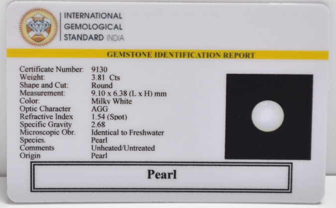 Beautiful 3.81 Cts Pearl (AAA+-Mines) sva 4+ Ratti PEARL. Free Horoscope & Free Pundit Ji Astrological Advise / Consultation. Original Natural Lab certified gems by IGI GTL / Birth stones / Large Gem Selection of shree shubh Rashi Ratan Vedic dhan at Gem Mines. May Bhagwan Brahma, Vishnu, Shiv & Universe bless you.