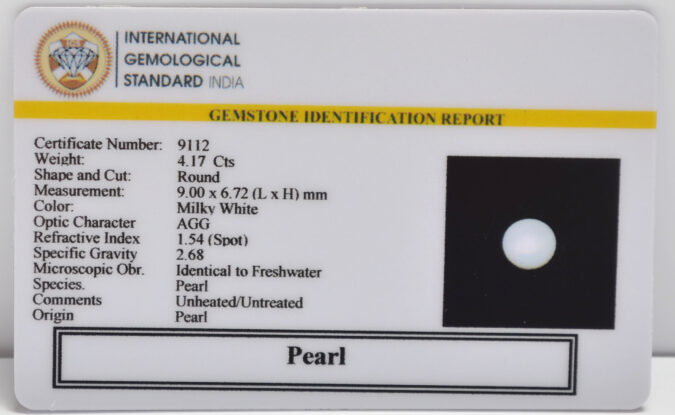 Beautiful 4.17 Cts Pearl (AAA+-Mines) sva 4+ Ratti PEARL. Free Horoscope & Free Pundit Ji Astrological Advise / Consultation. Original Natural Lab certified gems by IGI GTL / Birth stones / Large Gem Selection of shree shubh Rashi Ratan Vedic dhan at Gem Mines. May Bhagwan Brahma, Vishnu, Shiv & Universe bless you.