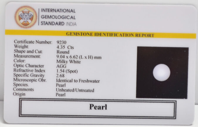 Beautiful 4.35 Cts Pearl (AAA+-Mines) sva 4+ Ratti PEARL. Free Horoscope & Free Pundit Ji Astrological Advise / Consultation. Original Natural Lab certified gems by IGI GTL / Birth stones / Large Gem Selection of shree shubh Rashi Ratan Vedic dhan at Gem Mines. May Bhagwan Brahma, Vishnu, Shiv & Universe bless you.