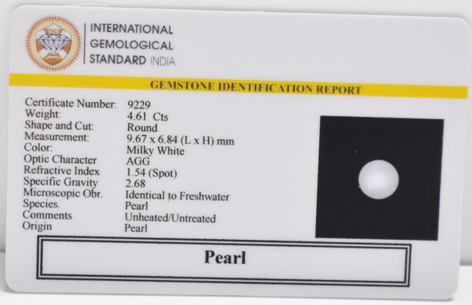 Beautiful 4.61 Cts Pearl (AAA+-Mines) sva 5+ Ratti PEARL. Free Horoscope & Free Pundit Ji Astrological Advise / Consultation. Original Natural Lab certified gems by IGI GTL / Birth stones / Large Gem Selection of shree shubh Rashi Ratan Vedic dhan at Gem Mines. May Bhagwan Brahma, Vishnu, Shiv & Universe bless you.