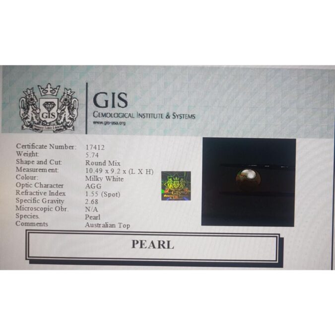 Beautiful 5.74 Ct. PEARL (Australian Mines) Sava 6 Ratti Moti. Free Horoscope & Free Pundit Ji Advise / Consultation. Original Natural Lab certified gems by IGI GTL / Birth stones / Large Gem Selection of shree shubh Rashi Ratan Vedic dhan at Gem Mines. May Bhagwan Brahma, Vishnu, Shiv & Universe bless you.