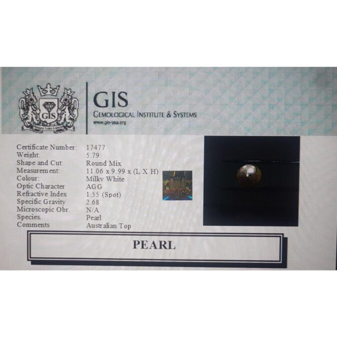 Beautiful 5.79 Ct. PEARL (Australian Mines) Sava 6 Ratti Moti. Free Horoscope & Free Pundit Ji Advise / Consultation. Original Natural Lab certified gems by IGI GTL / Birth stones / Large Gem Selection of shree shubh Rashi Ratan Vedic dhan at Gem Mines. May Bhagwan Brahma, Vishnu, Shiv & Universe bless you.