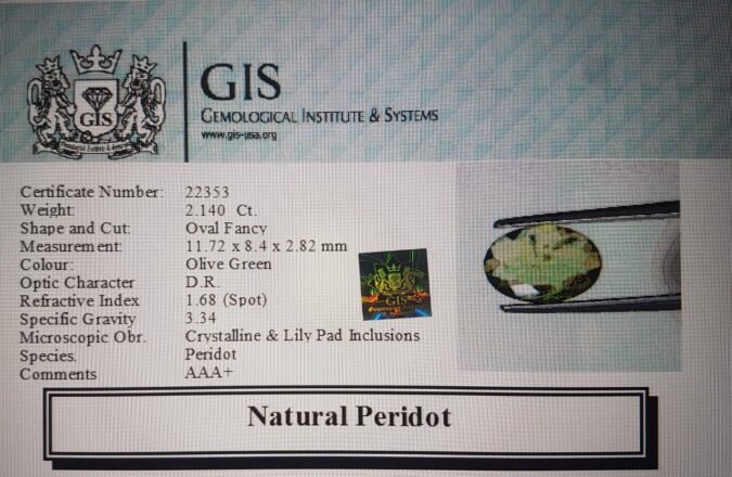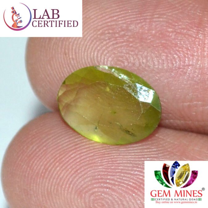 Beautiful 2.14 Ct. Peridot (Burma Mines) Sava 2 Ratti. Free Horoscope & Free Pundit Ji Advise / Consultation. Original Natural Lab certified gems by IGI GTL / Birth stones / Large Gem Selection of shree shubh Rashi Ratan Vedic dhan at Gem Mines. May Bhagwan Brahma, Vishnu, Shiv & Universe bless you.