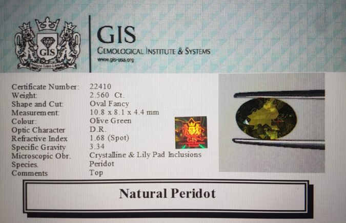 Beautiful 2.56 Ct. Peridot (Burma Mines) Sava 2 Ratti. Free Horoscope & Free Pundit Ji Advise / Consultation. Original Natural Lab certified gems by IGI GTL / Birth stones / Large Gem Selection of shree shubh Rashi Ratan Vedic dhan at Gem Mines. May Bhagwan Brahma, Vishnu, Shiv & Universe bless you.